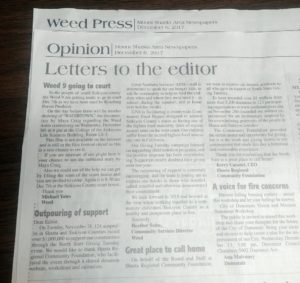A letter to the editor published in the Mt. Shasta Area Newspapers, Dec 6, 2017.